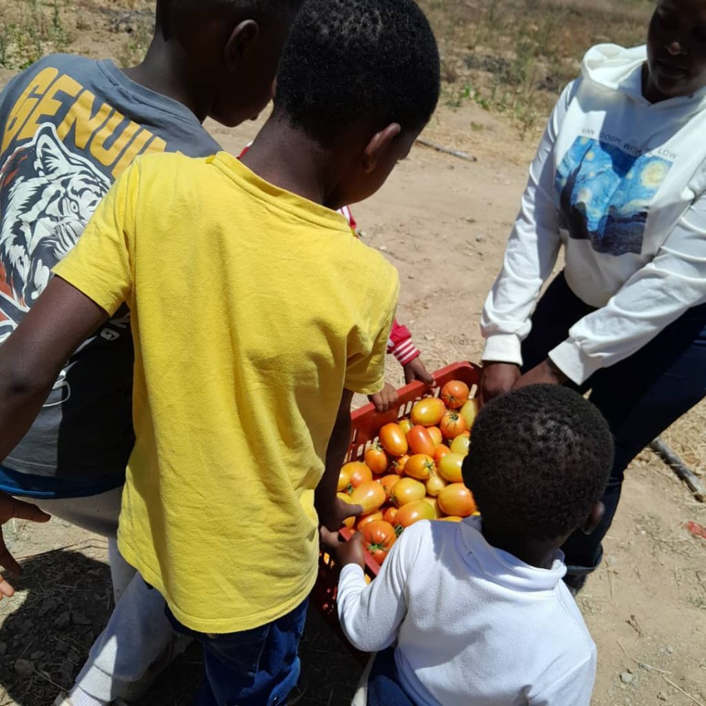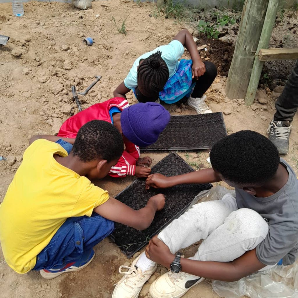 The picture above, shows children while they were planting tomatoes seeds in one of the sessions.